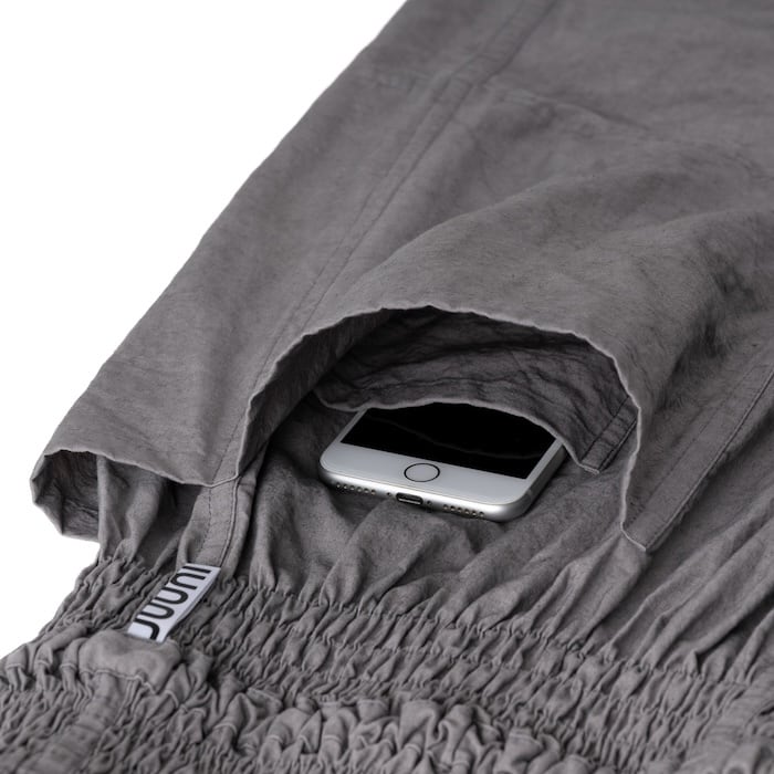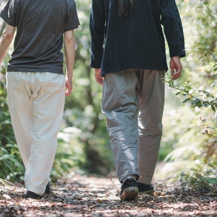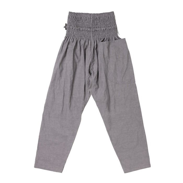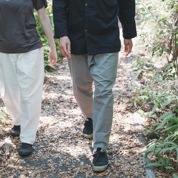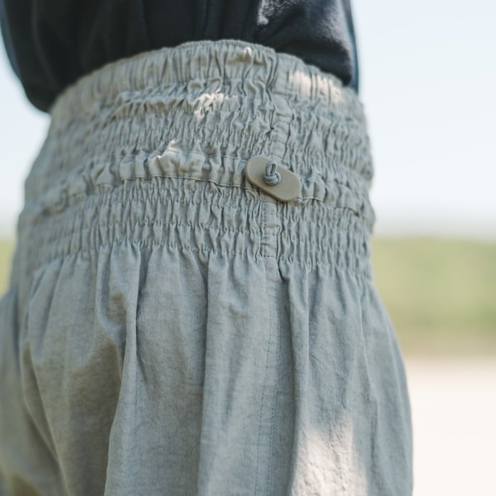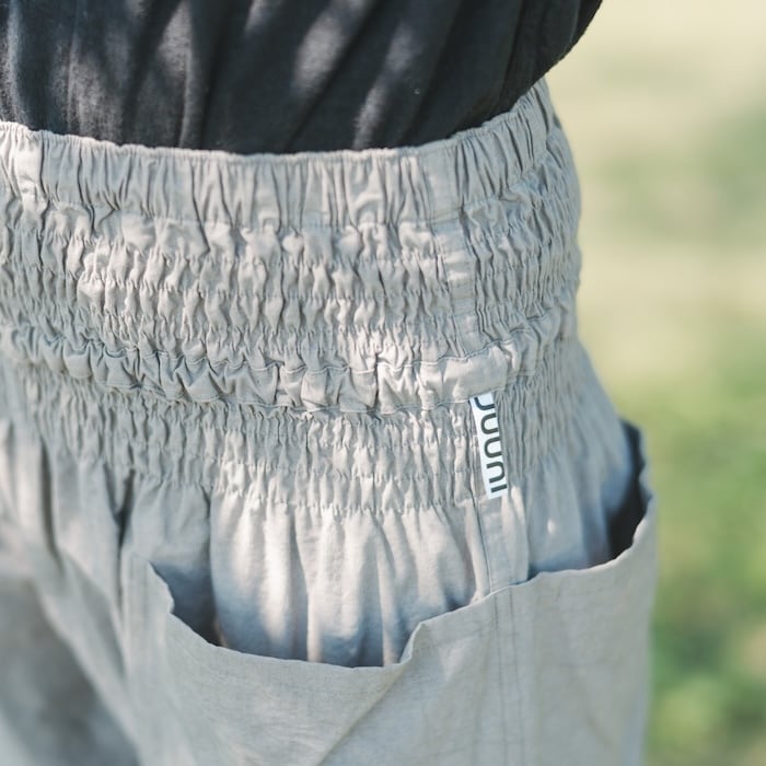 主に女性の野良着とされていたもんぺは大変動きやすく機能的で、造りにも無駄がありません。そのもんぺの良いところをそのままに、様々な体型にフィットするように私たちなりに見直したのが「モンペズボン」です。