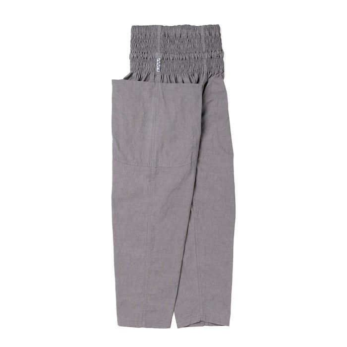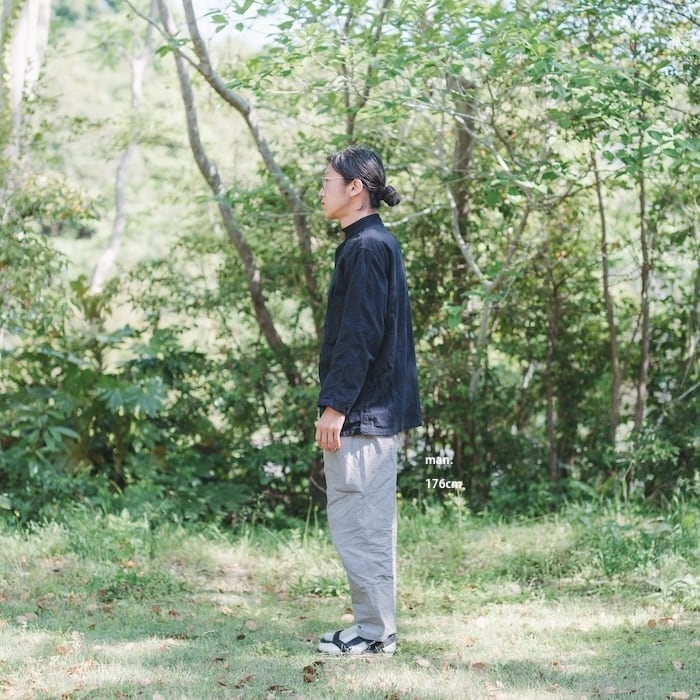 自然の中で、街の中で、そして日々の生活の中で着られる、自由度の高い衣服がほしい。そんな中で頭に浮かんだのは、かつて日本で広く普及していた労働着「もんぺ」です。