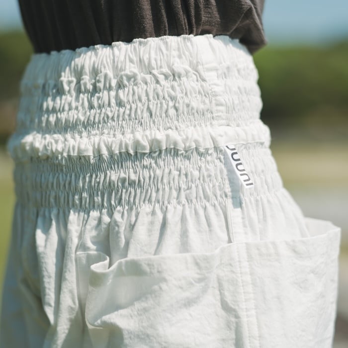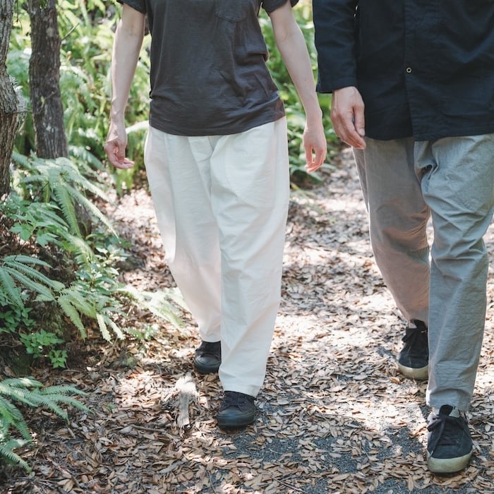 主に女性の野良着とされていたもんぺは大変動きやすく機能的で、造りにも無駄がありません。そのもんぺの良いところをそのままに、様々な体型にフィットするように私たちなりに見直したのが「モンペズボン」です。